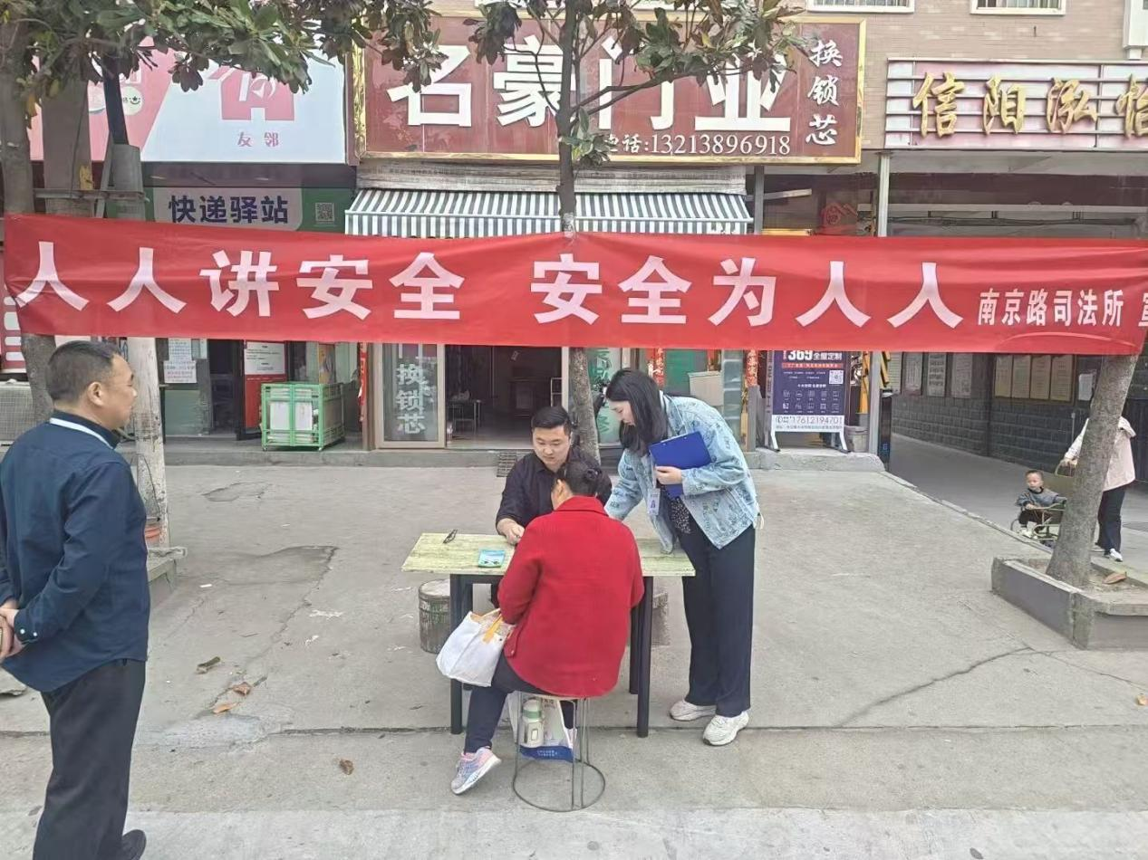 近日,信阳市南京路司法所联合河南以德律师事务所,走进民乐社区开展 “人人讲安全